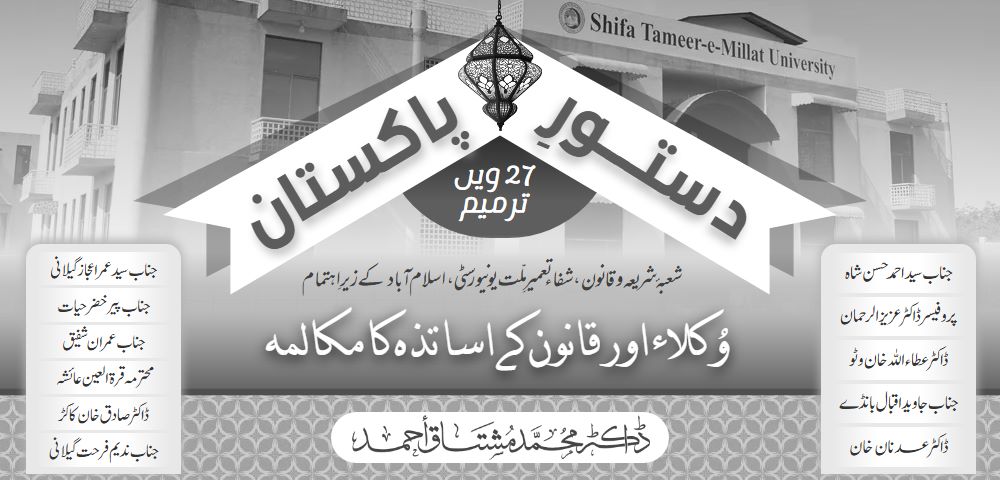 کل، 3 دسمبر 2025ء کو، شعبۂ شریعہ و قانون، شفاء تعمیرِ ملت یونیورسٹی کے زیرِ اہتمام ہم نے 27 ویں آئینی ترمیم پر وکلا اور قانون کے اساتذہ کی گول میز کانفرنس کا انعقاد کیا۔
