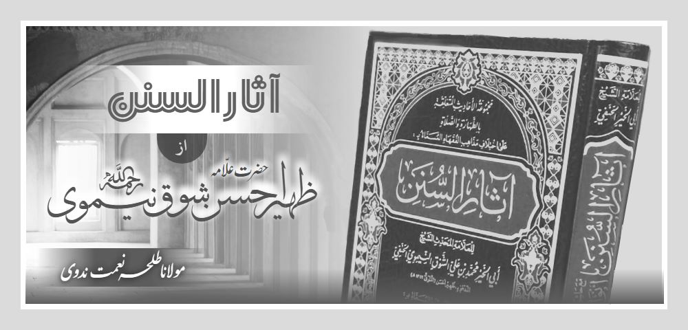 آثار السنن از حضرت علامہ ظہیر احسن نیموی (م ۱۳۲۲ھ)1 فقہ حنفی کی موید احادیث کا مقبول و مستند مجموعہ ہے، جس کو بے انتہا مقبولیت حاصل ہوئی۔ ان کی اور بھی متعدد تصانیف ہیں، علومِ اسلامیہ اور خالص اردو ادبیات کی جامعیت جس قدر ان کے یہاں ملتی ہے وہ کم ہی لوگوں کے حصہ میں آئی ہے۔ دنیائے ادب میں ان کی لسانی تحقیقات اور ان کی شاعری بھی اپنا مقام رکھتی ہے، لیکن جس کتاب نے ان کو شہرتِ عام کے خلعتِ دوام سے سرفراز کیا ہے، اور ان شاء اللہ آخرت میں بھی ان کی سرخروئی کا ذریعہ بنے گی، وہ ان کی مشہورِ زمانہ کتاب آثار السنن ہے، کاش اگر اس علمی منصوبے کا ایک بڑا حصہ بھی پورا ہو جاتا تو علمی دنیا کے لئے بہت اہم تحفہ ہوتا۔ حضرت نیموی نے اور بھی مذہبی اور فقہی رسائل لکھے لیکن ان کی شہرت صرف ایک زمانہ تک محدود رہی، بلکہ سچ یہ ہے کہ ان کی تصنیف آثار السنن کے بعد ہی ان کتابوں کو بھی زیادہ شہرت ملی۔