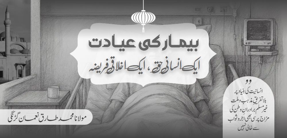 ایک مسلمان کا فرض ہے کہ مریض کے ساتھ ہم دردی اور غم خواری کرے، اس کے احوال پوچھے اور جہاں تک ہو سکے اس کا تعاون کرے، اسی کو عربی زبان میں عیادت کہا جاتا ہے۔