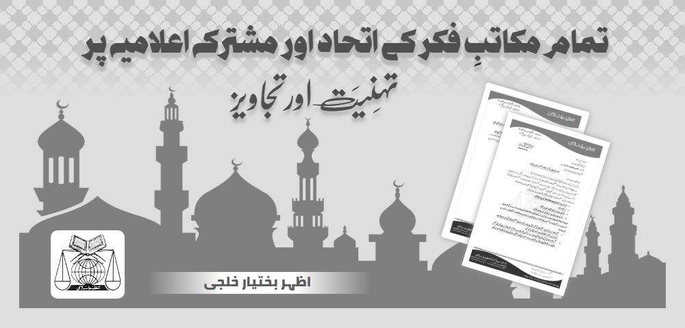 - مجلس اتحادِ امت کے تحت ایک مستقل مشاورتی مجلس قائم کی جائے اور اس میں موجودہ یا مستقبل میں قومی سطح پر غیر اسلامی اقدامات کے حوالے سے مشترکہ قانونی اقدامات پر غور اور فیصلے کئے جا سکیں۔