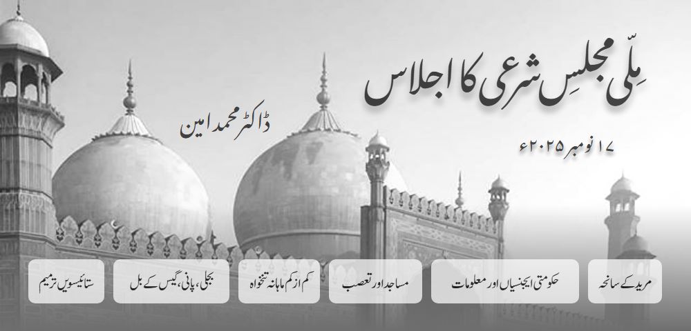 ملّی مجلسِ شرعی، جو سارے دینی مکاتبِ فکر کا مشترکہ علمی پلیٹ فارم ہے، کے علماء کرام کا ایک اجلاس، حسبِ فہرست لف ہٰذا، ۱۵ نومبر ۲۰۲۵ء کو جامعہ عثمانیہ (آسٹریلیا مسجد نزد ریلوے سٹیشن) لاہور میں ہوا جو صبح دس بجے سے دوپہر ایک بجے تک جاری رہا۔ علماء کرام نے بحث و مناقشہ کے بعد مندرجہ ذیل فیصلے کیے: