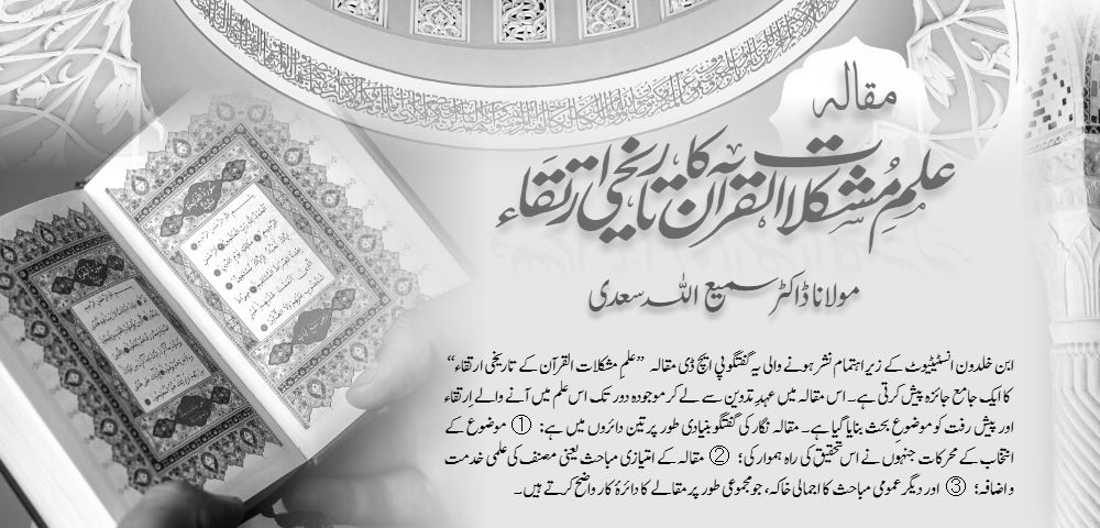 - ایک منطقی ترتیب سے علمِ مشکلات القرآن کے تاریخی ارتقاء کا ذکر نہیں ہے۔